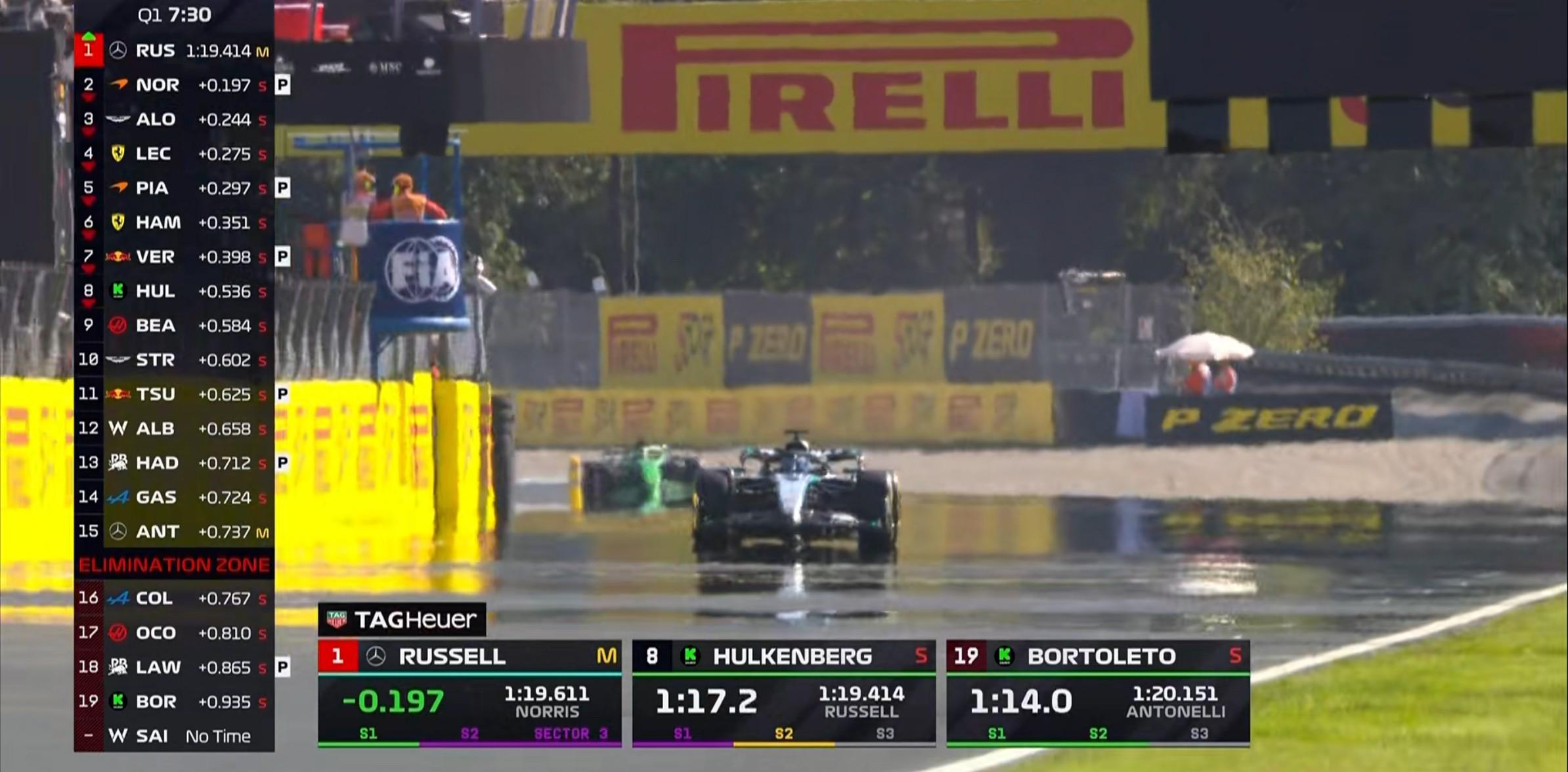 Q1首轮飞驰圈结束,两台迈凯伦领跑全场,两台威廉姆斯都出现失误未做出成绩;